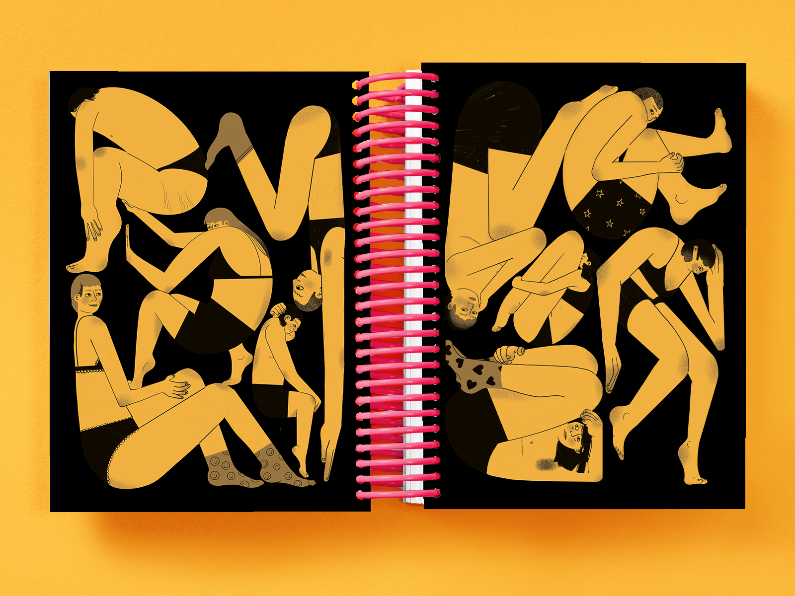 I illustrated several images to accompany the text. They not only serve as a source of color for the book, but also as a visual representation of the diverse bodies of individuals that hold these identities. They also reflect the theme of community and of being confined by expectation.